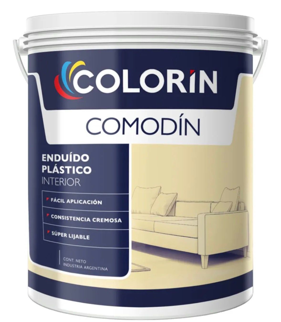 Enduido Comodín exterior de Colorín por 1 litro, ideal para reparar, nivelar y alisar superficies exteriores antes de pintar. Su fórmula ofrece buen poder de relleno y excelente adherencia sobre revoque, hormigón y mampostería. Permite cubrir grietas, poros e imperfecciones, logrando una superficie uniforme para una mejor terminación de pintura. De fácil aplicación con espátula o llana y buen lijado una vez seco.