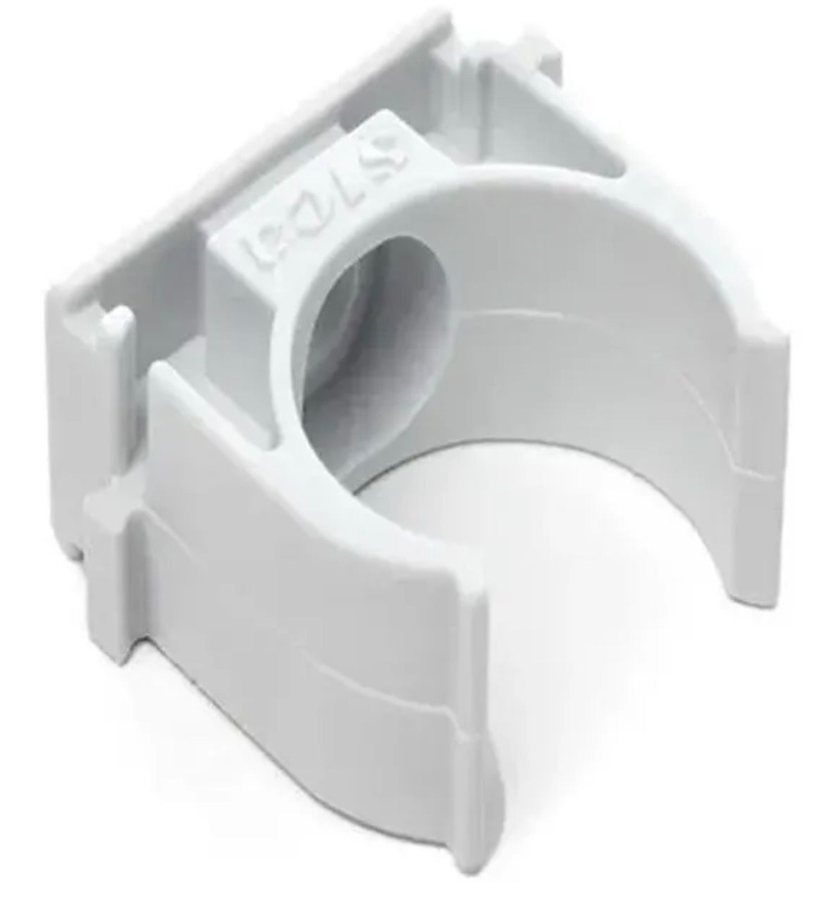 Grampa PVC para caño eléctrico Grampa de PVC para caño eléctrico, utilizada para fijar el caño a paredes o techos. Permite una sujeción firme y ordenada del caño en la instalación eléctrica.