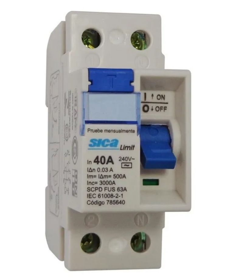 El Disyuntor Sica de 40 Amp es un dispositivo de protección eléctrica diseñado para interrumpir el flujo de corriente en caso de sobrecarga o cortocircuito, protegiendo así a personas y equipos.