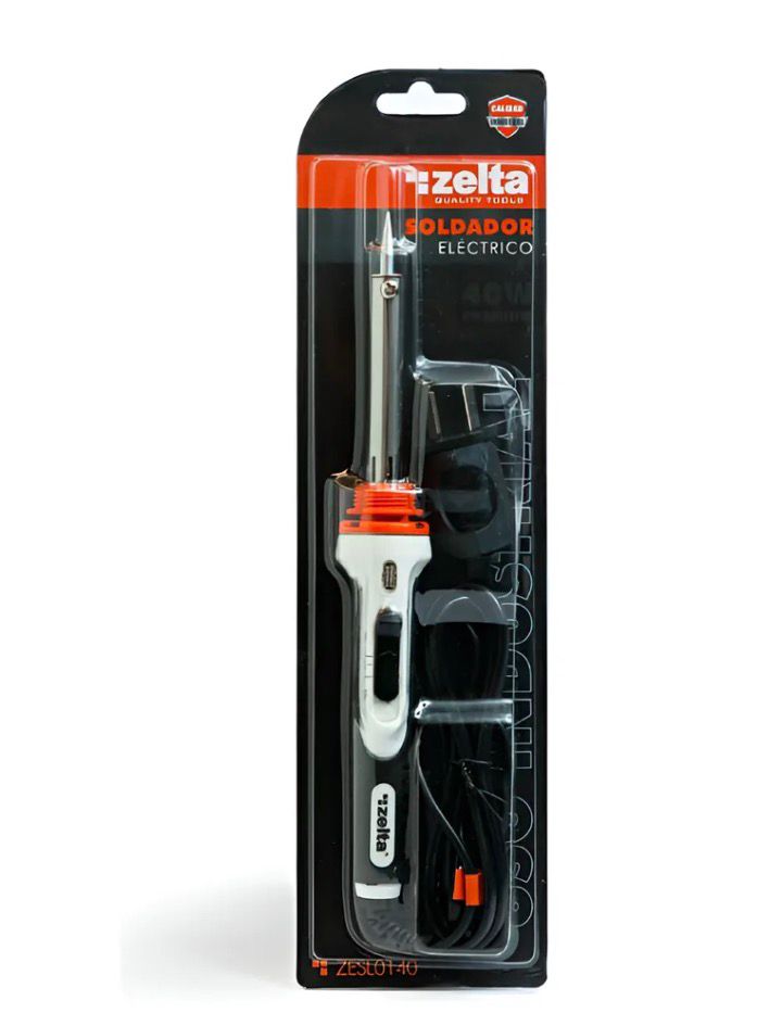 Soldador eléctrico tipo lápiz Zelta de 40 W y 60 W, ideal para trabajos de soldadura con estaño en cables, terminales y componentes eléctricos o electrónicos. Funciona a 220 V, cuenta con punta metálica de calentamiento rápido y mango aislante térmico que brinda mayor seguridad y comodidad durante el uso. Herramienta práctica y liviana, apta para reparaciones, instalaciones y mantenimiento eléctrico