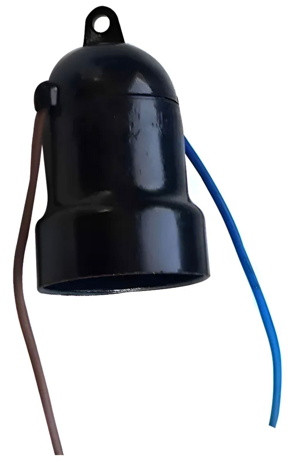 Portalámpara con chicote, diseñado con cable incorporado para facilitar la conexión eléctrica. Práctico para instalaciones rápidas en luminarias o adaptaciones.