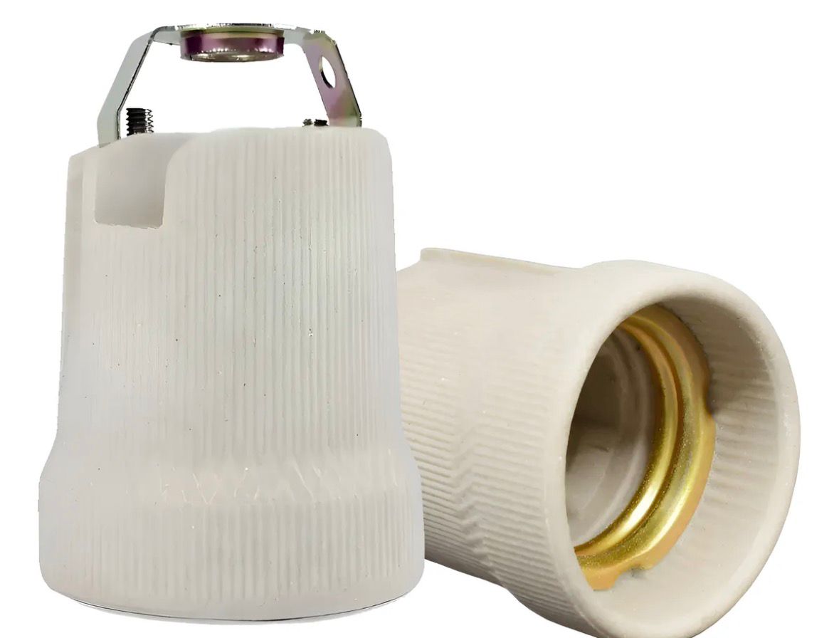 Portalámpara cerámico, fabricado en material resistente a altas temperaturas. Ideal para lámparas de mayor potencia o uso prolongado, brindando mayor seguridad.