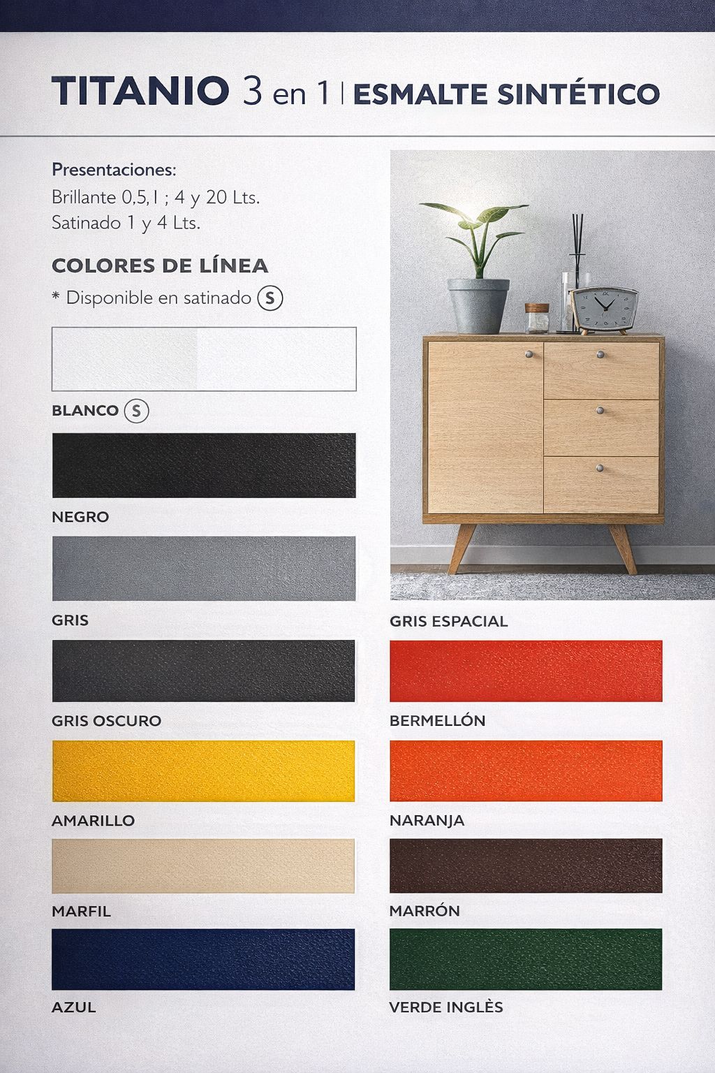 Esmalte sintético Titanio Triple Acción negro brillante de 1 litro, indicado para proteger y embellecer superficies metálicas y de madera. Su tecnología 3 en 1 combina convertidor de óxido, sellador y pintura en un solo producto, facilitando la aplicación y reduciendo tiempos de trabajo. Brinda alta cobertura, buena durabilidad y acabado brillante de gran calidad.