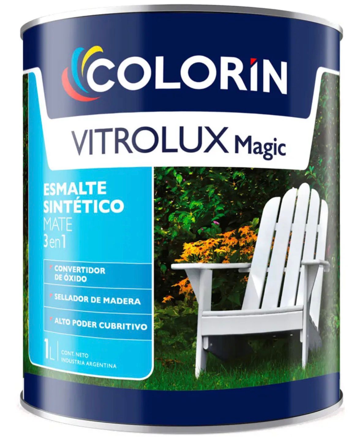 Esmalte sintético Vitrolux Triple Acción negro mate de 1 litro, indicado para proteger y embellecer superficies metálicas y de madera. Su tecnología 3 en 1 combina convertidor de óxido, sellador y pintura en un solo producto, facilitando el trabajo y reduciendo tiempos de aplicación. Brinda alta cobertura, buena resistencia y acabado mate de gran calidad.
