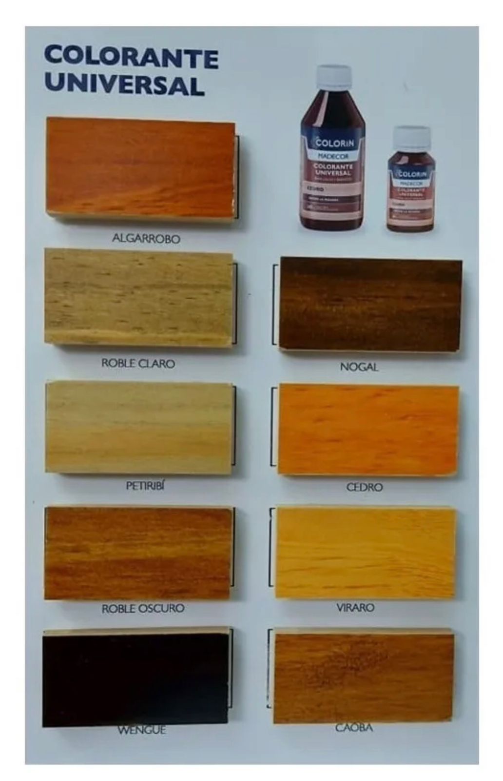 Colorante universal especialmente formulado para teñir y entonar maderas, logrando tonos naturales y decorativos. Se utiliza mezclado con barnices, lacas o protectores para madera, permitiendo personalizar el color y resaltar la veta natural. Es apto para productos base agua o solvente y puede aplicarse tanto en interior como exterior.