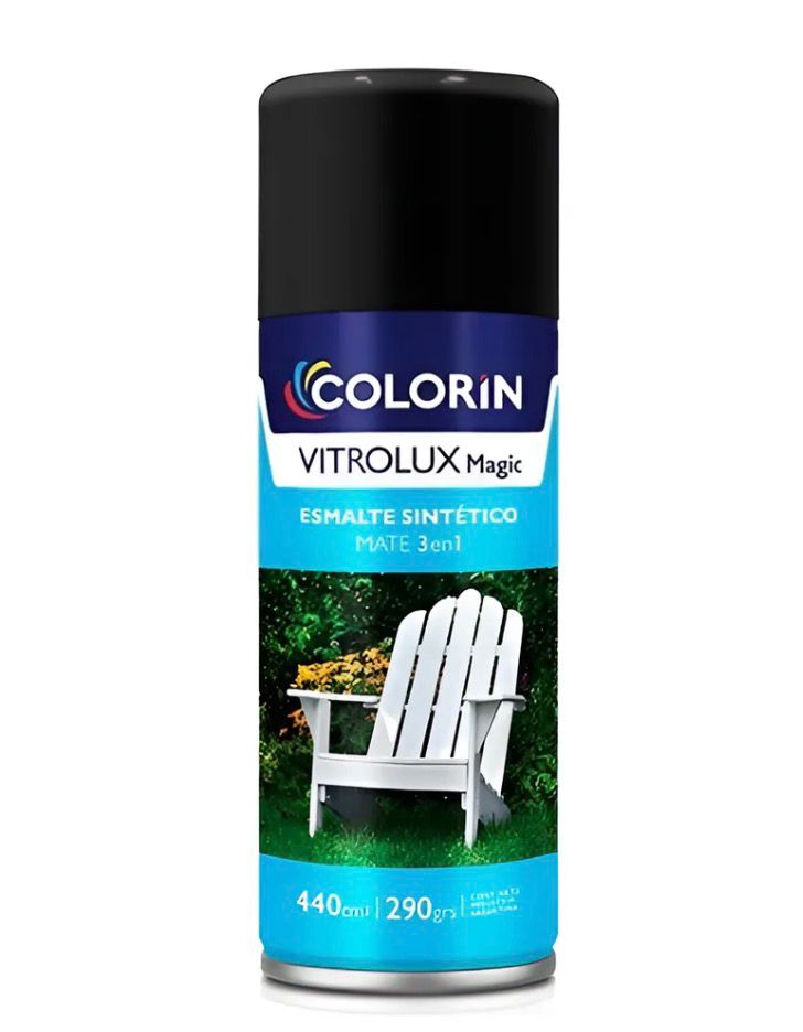 Esmalte sintético Vitrolux en aerosol negro mate de 440 cc, indicado para proteger y decorar diferentes superficies con una terminación mate de alta calidad. Ofrece buen poder cubritivo, secado rápido y fácil aplicación gracias a su sistema en aerosol, logrando acabados uniformes sin marcas de pincel. Ideal para aplicar sobre metal, madera, plástico y más.